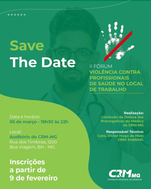 📍 Local: Auditório do CRM-MG (Rua Timbiras, 1.200)